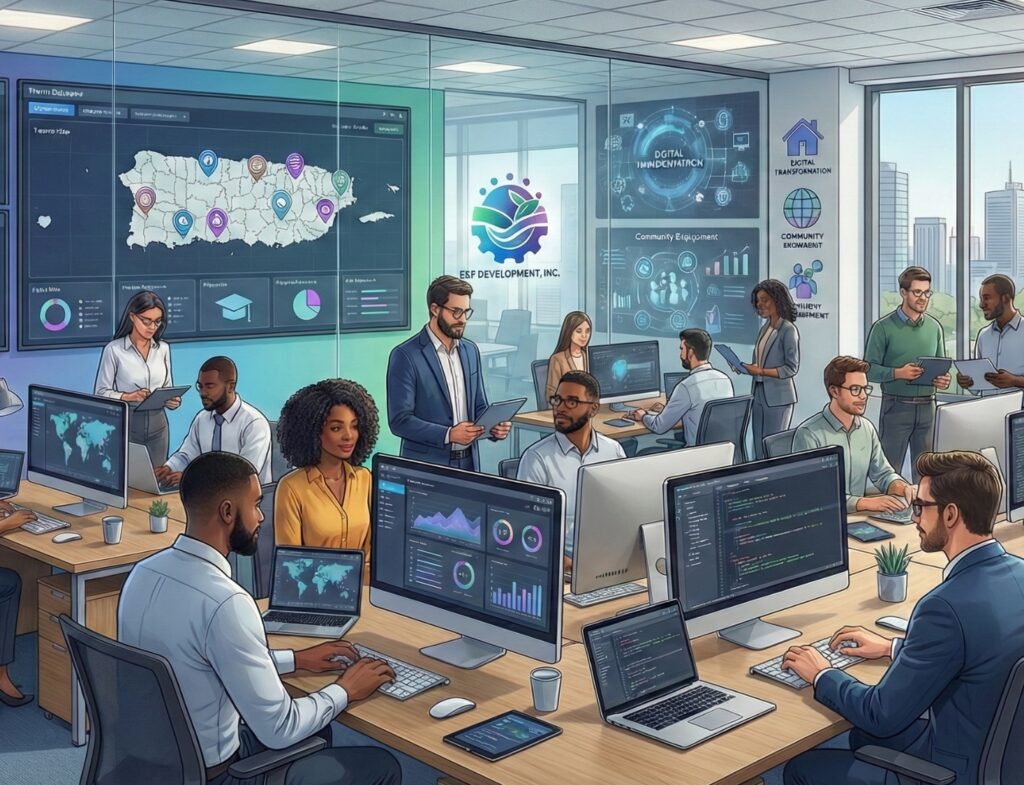 Nuestra experiencia en capacitación, implementación de proyectos comunitarios y desarrollo tecnológico nos posiciona como el socio estratégico ideal para la transformación digital del gobierno de Puerto Rico.